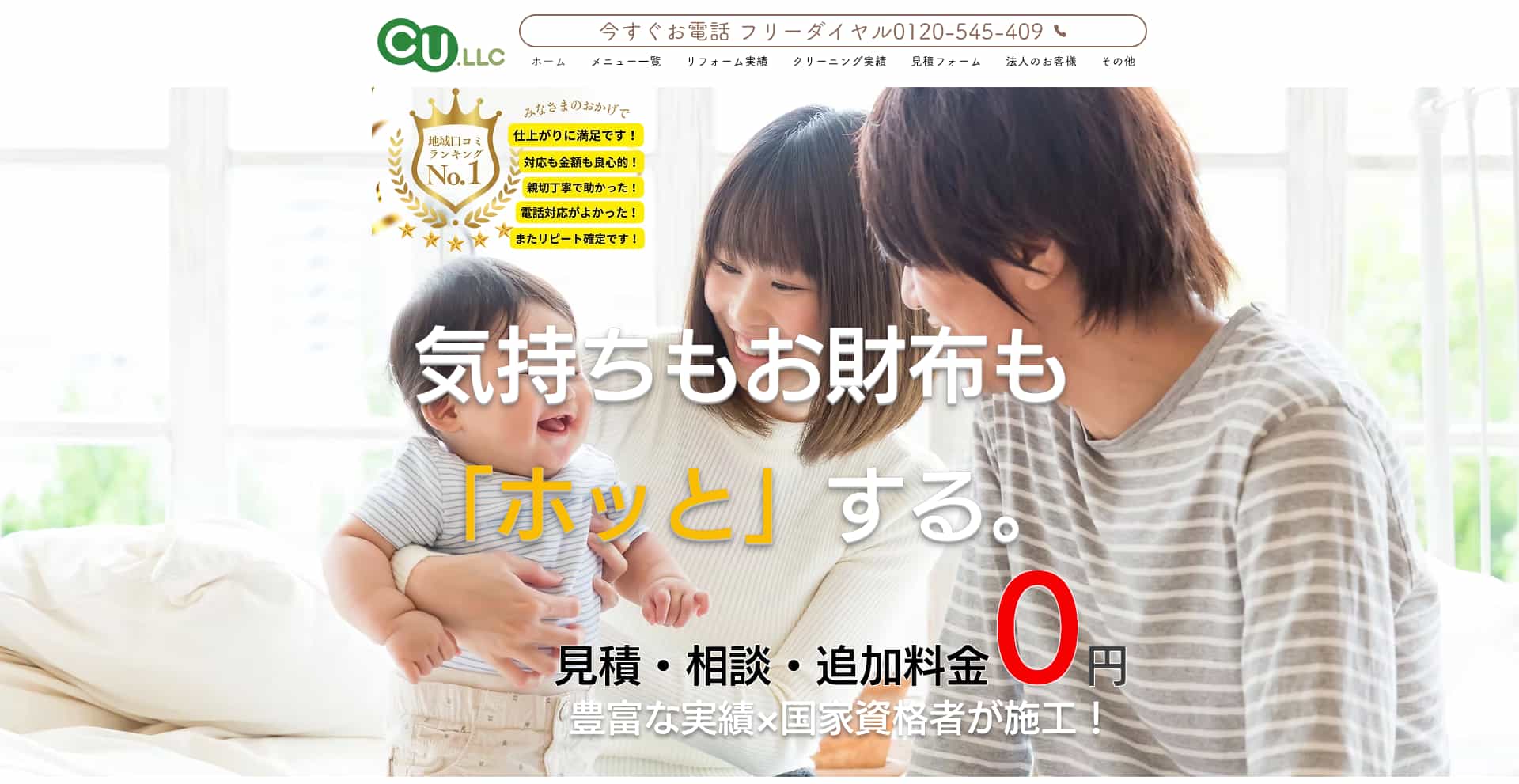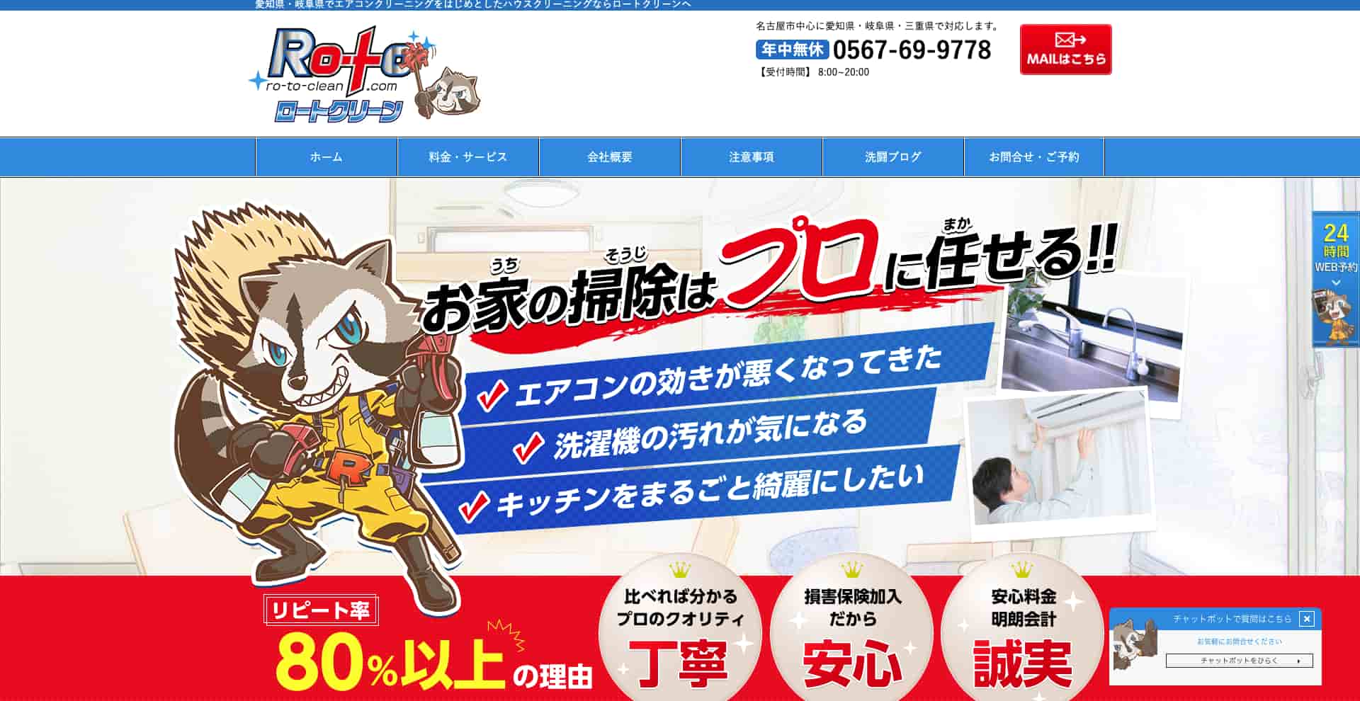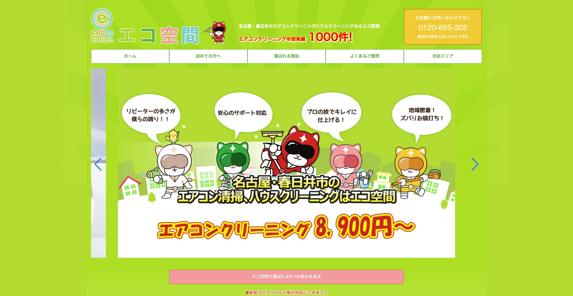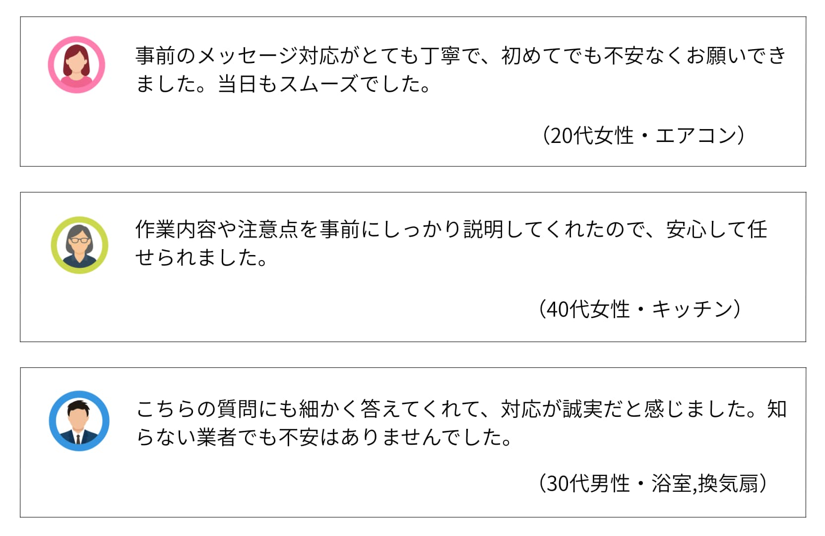 | 費用感 | 浴室:16,500円〜 エアコン:10,000円〜 トイレ:5,500円〜 |
