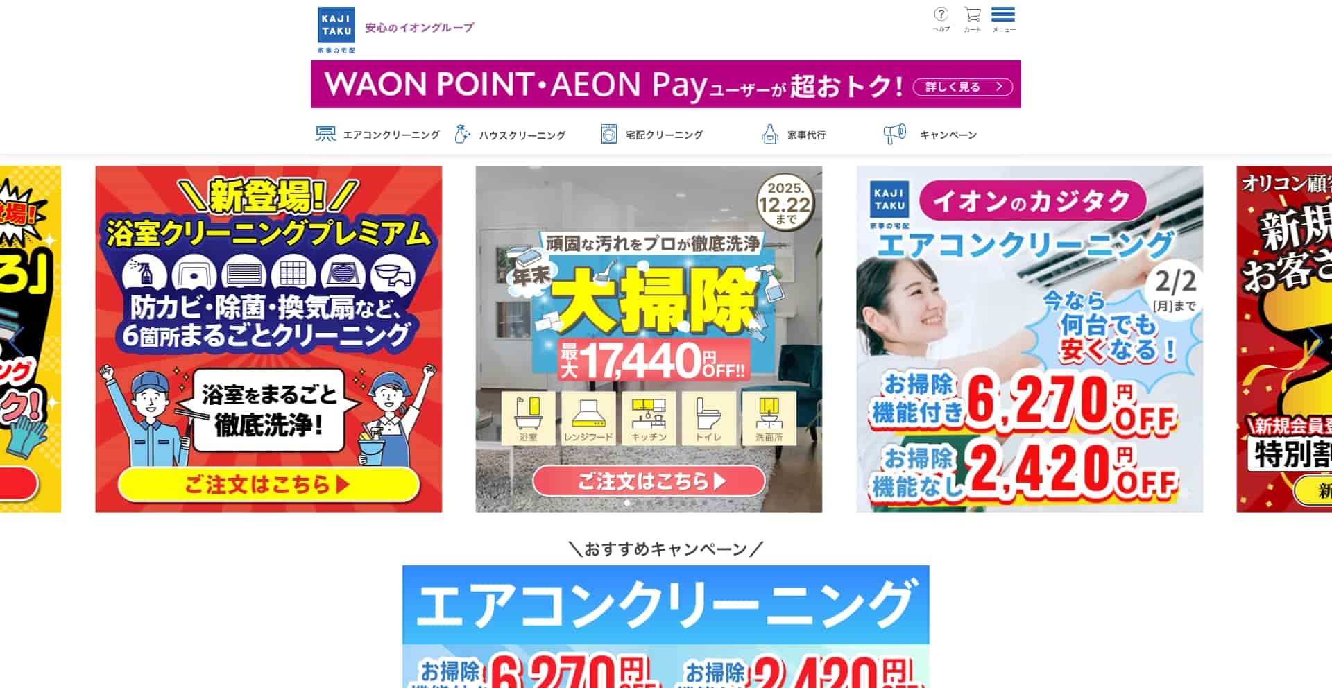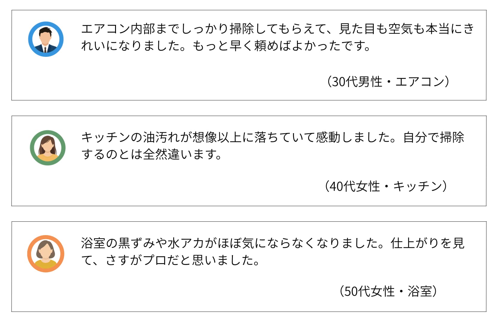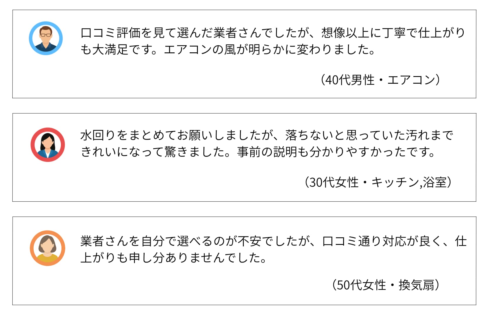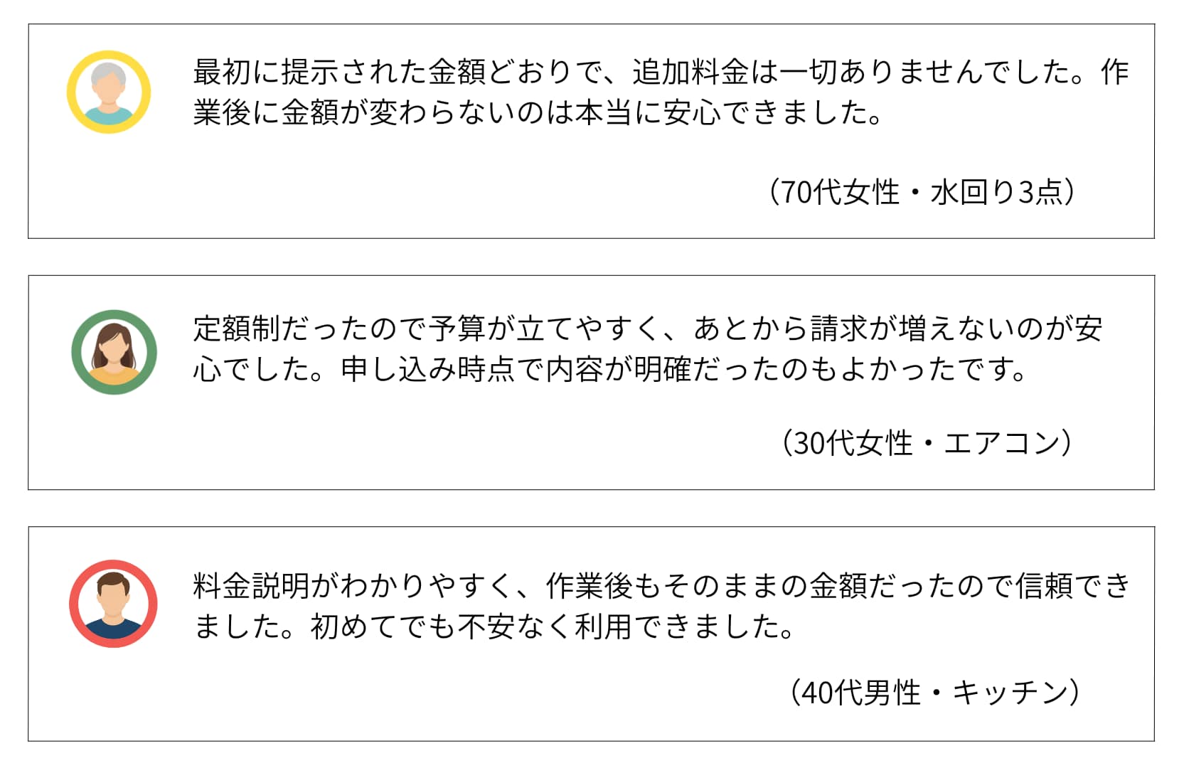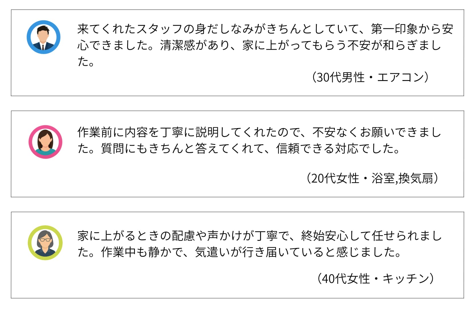 | 費用感 | 浴室:16,500円〜 エアコン:10,000円〜 トイレ:5,500円〜 |
