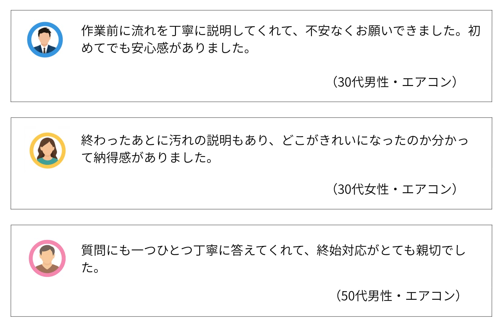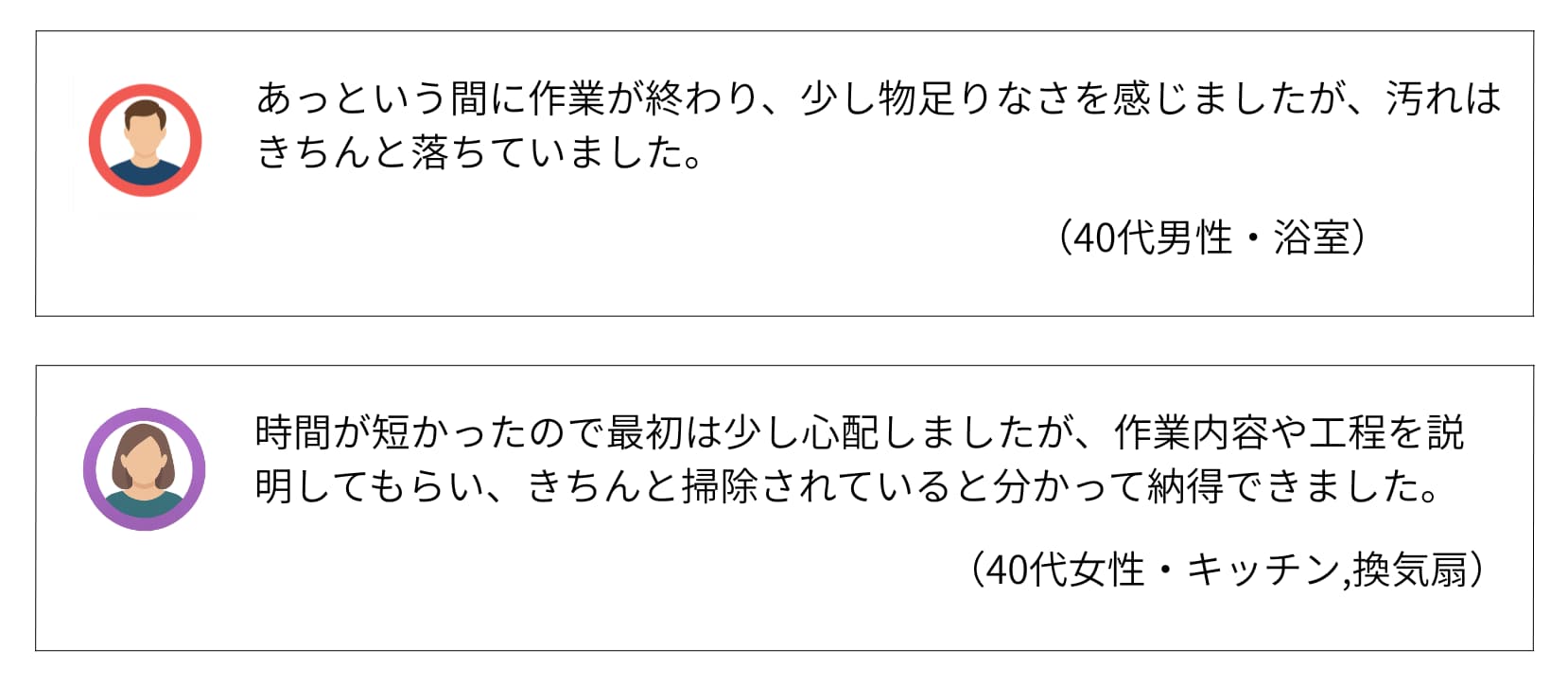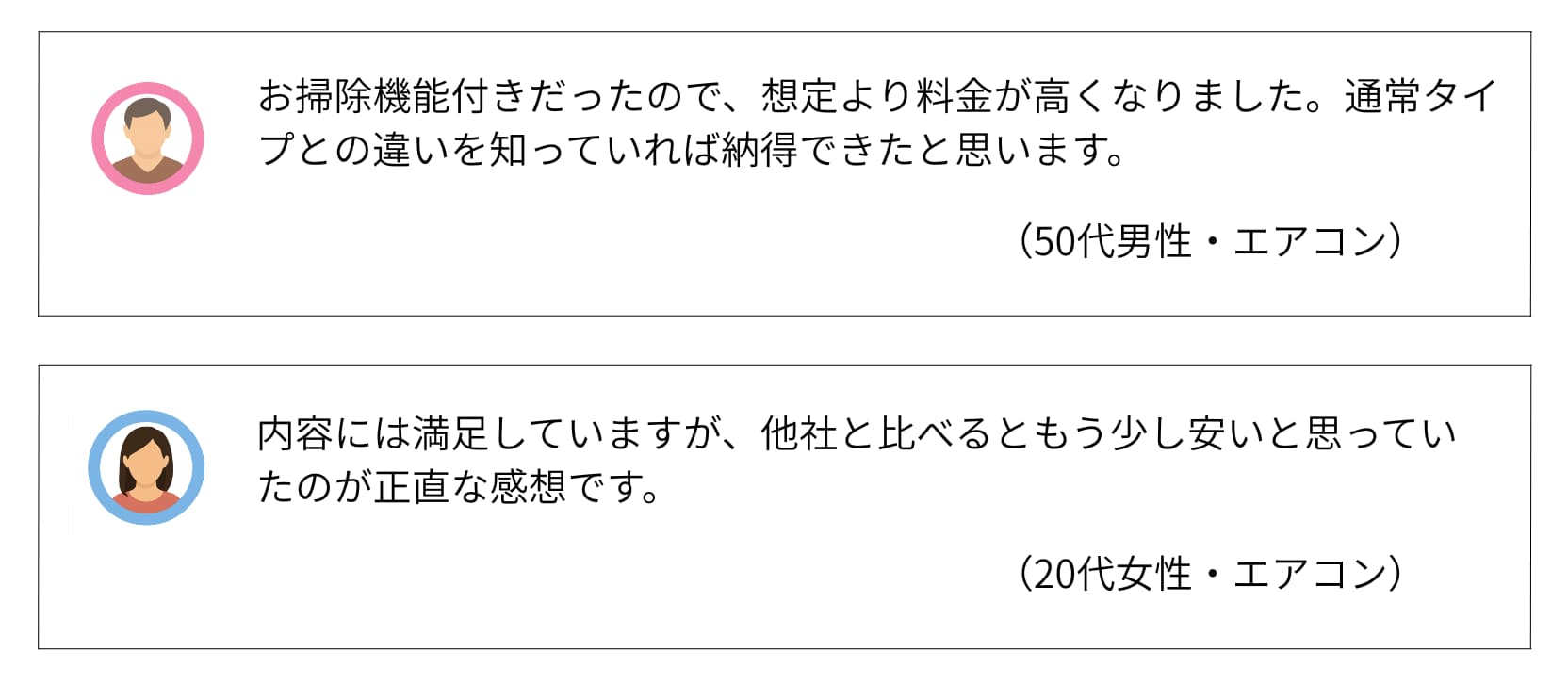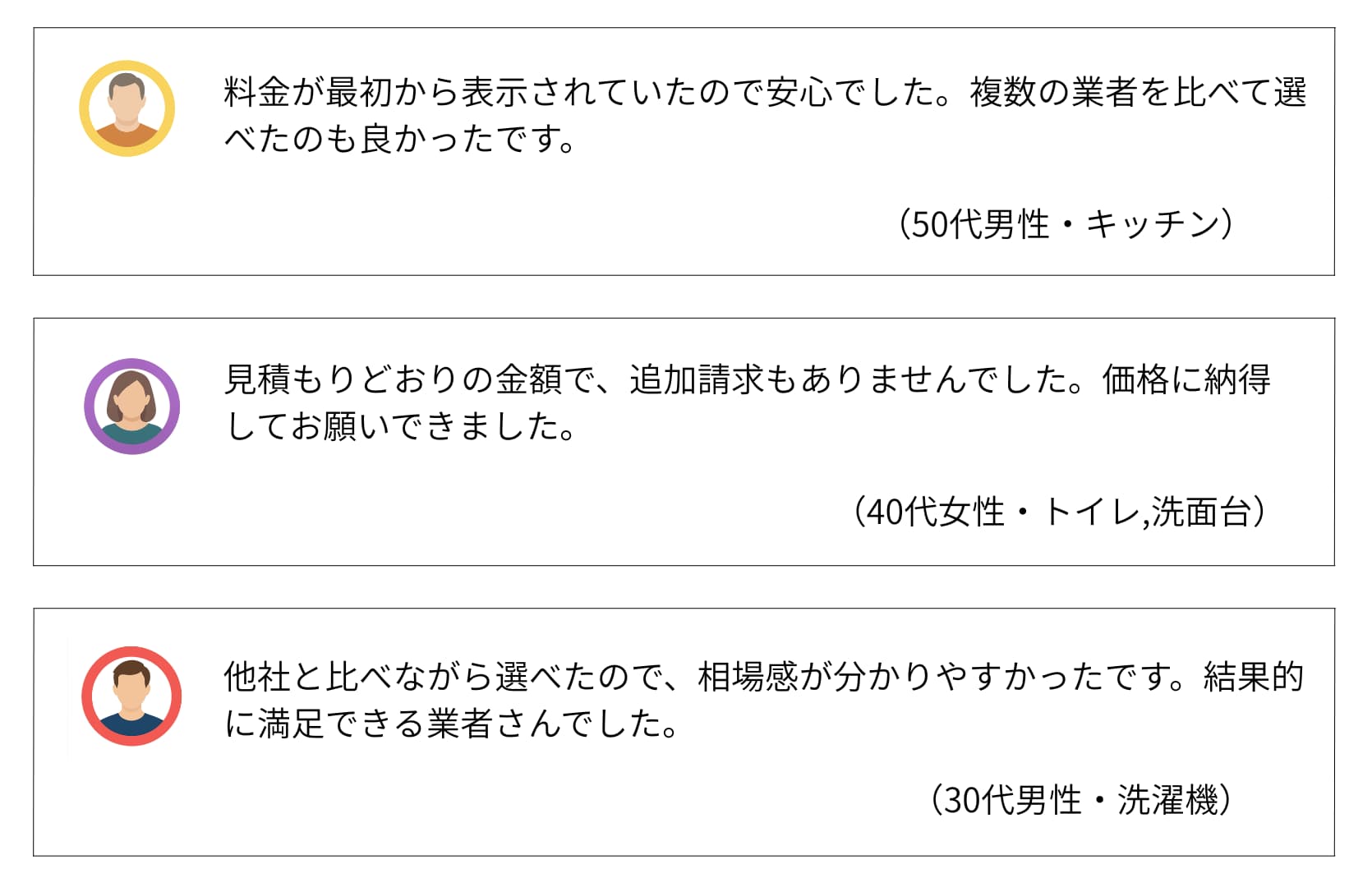 | 費用感 | 浴室:16,500円〜 エアコン:10,000円〜 トイレ:5,500円〜 |