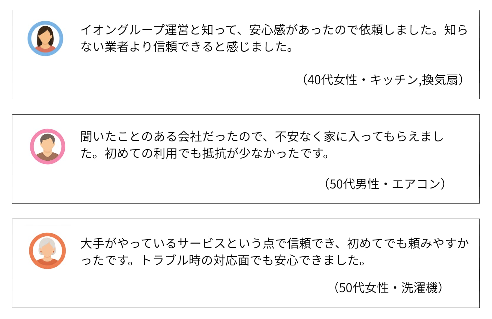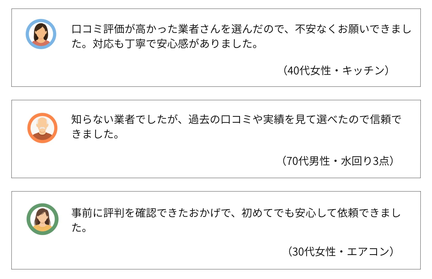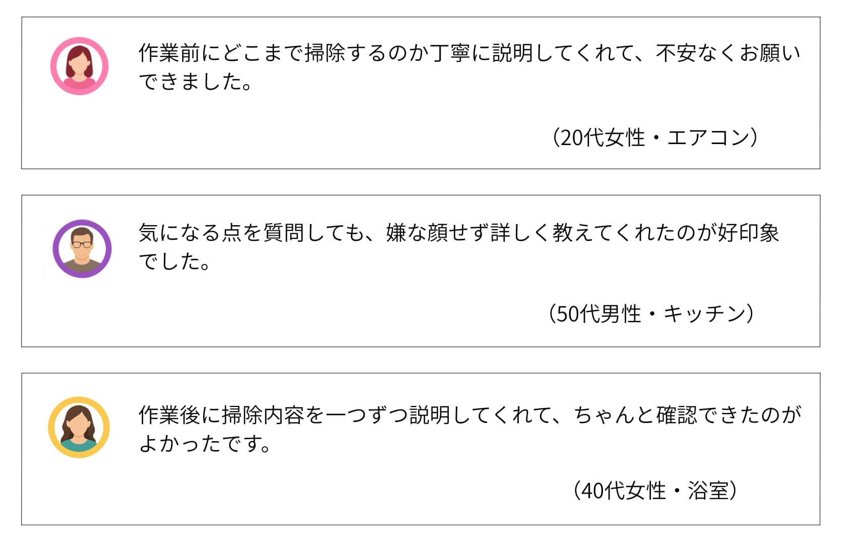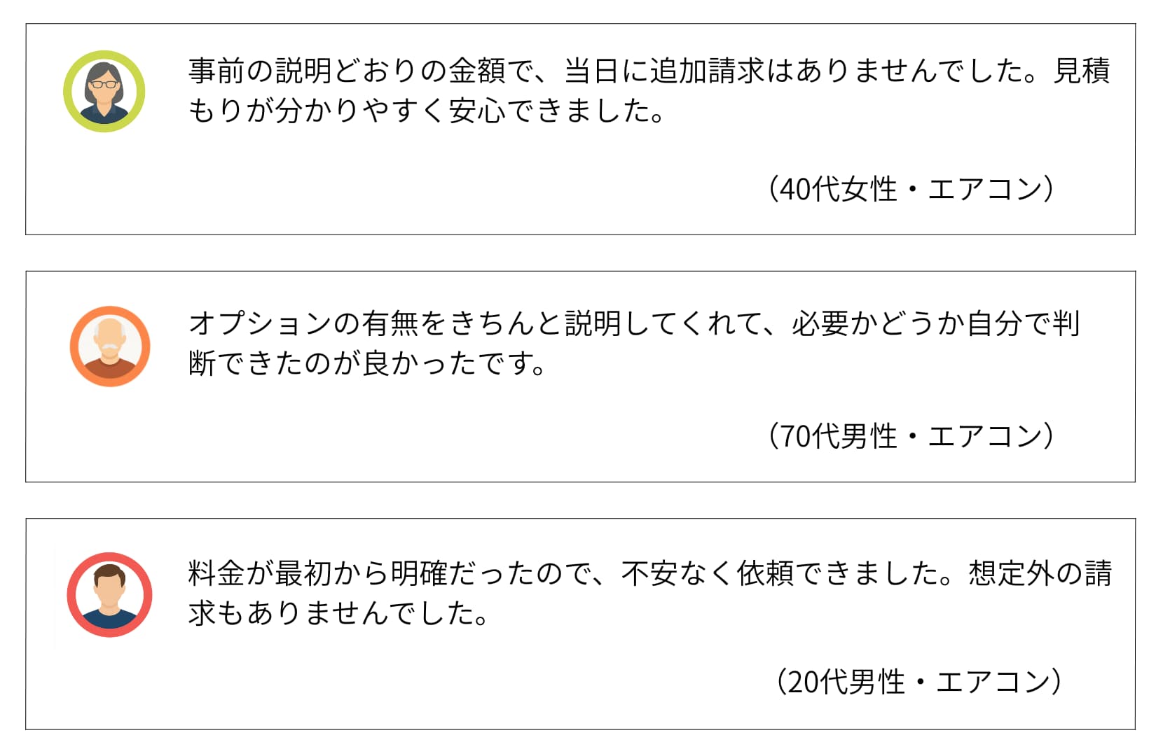 | 費用感 | 浴室:16,500円〜 エアコン:10,000円〜 トイレ:5,500円〜 |