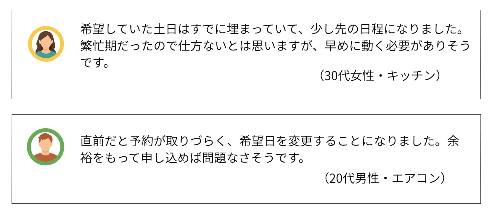 | 費用感 | キッチン:15,000円 浴室:15,000円〜 エアコン:10,000円〜 |