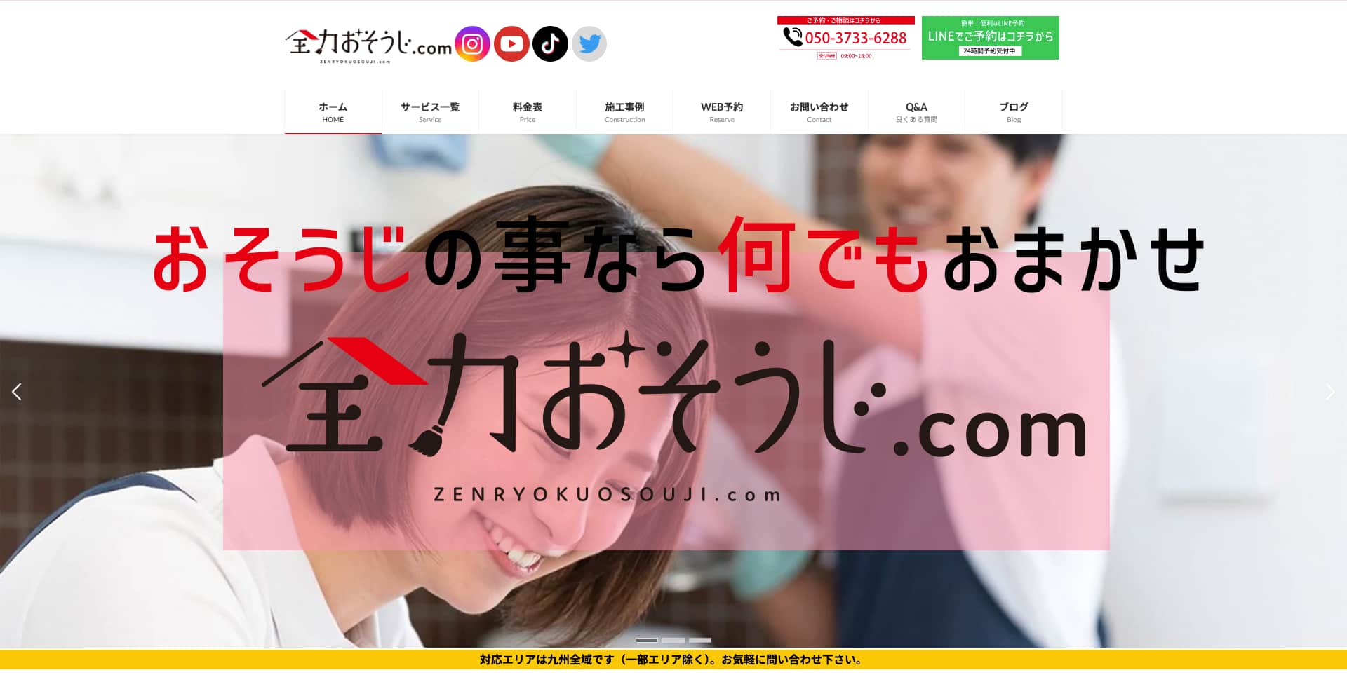 | 費用感 | 洗濯機:24,800円〜 キッチン:17,800円〜 浴室:17,800円〜 エアコン:11,800円 トイレ:12,000円〜 |