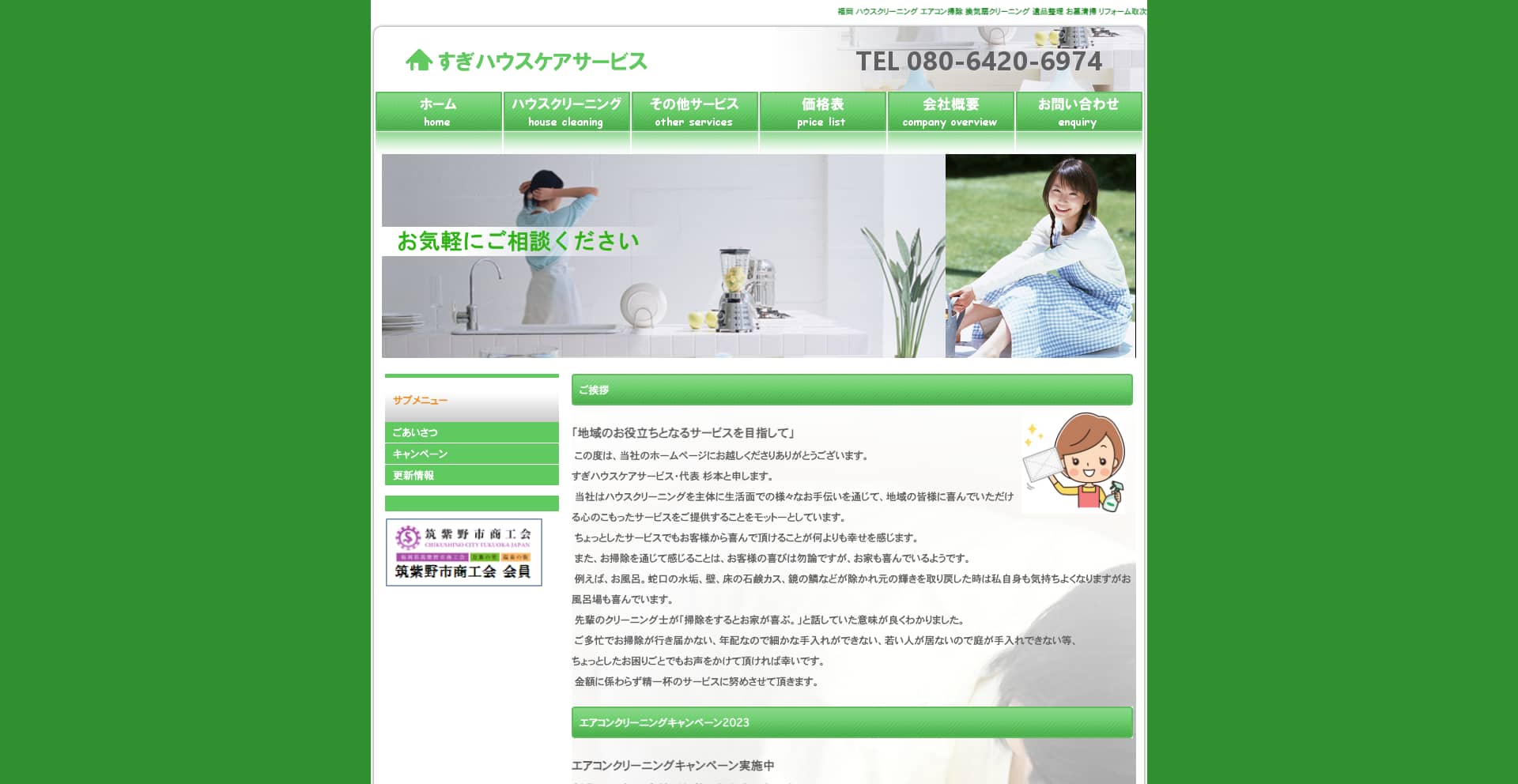 | サービス内容 | エアコン、キッチン、浴室、トイレ、洗面所、特殊清掃、害虫・害獣防除、植栽管理、リフォームなど |