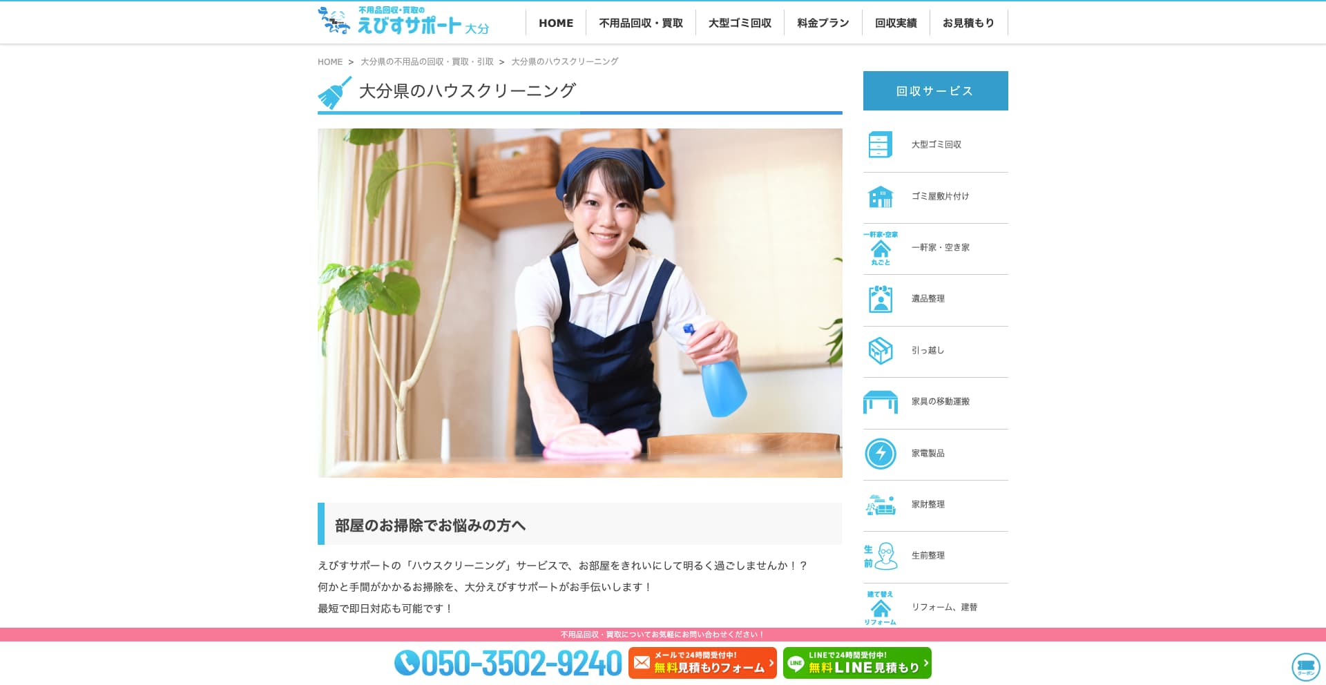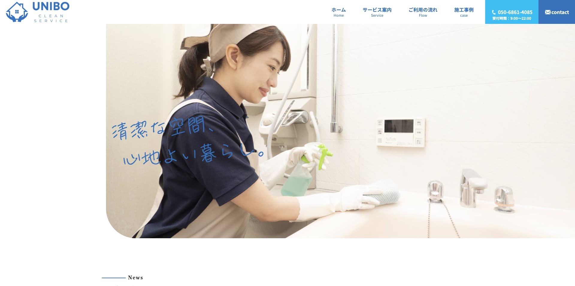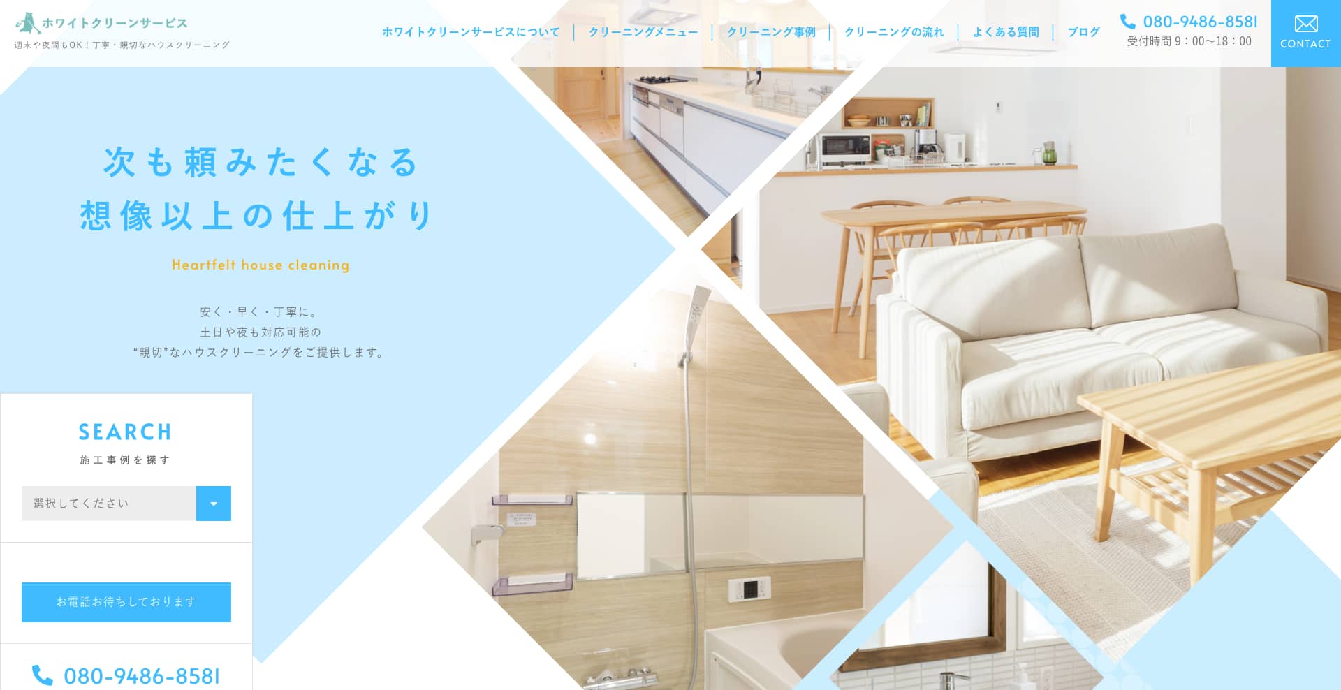 | 費用感 | キッチン:12,000円〜 浴室:14,000円〜 エアコン:9,000円 トイレ:7,000円〜 |