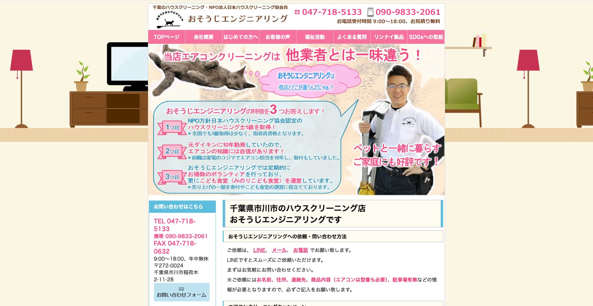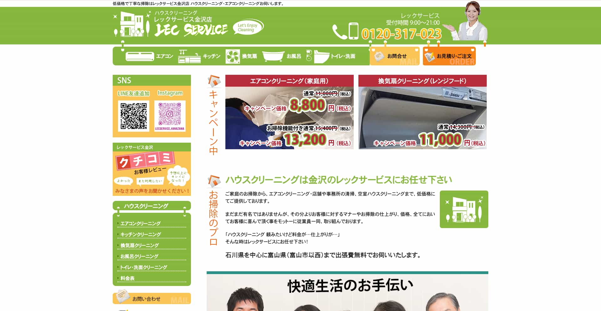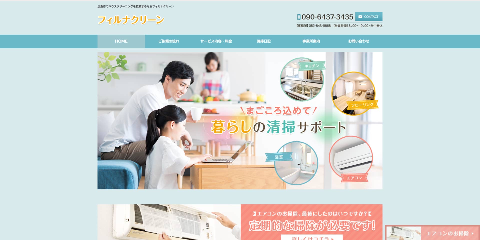 | サービス内容 | エアコン、キッチン、レンジフード、浴室、トイレ、洗面台など |