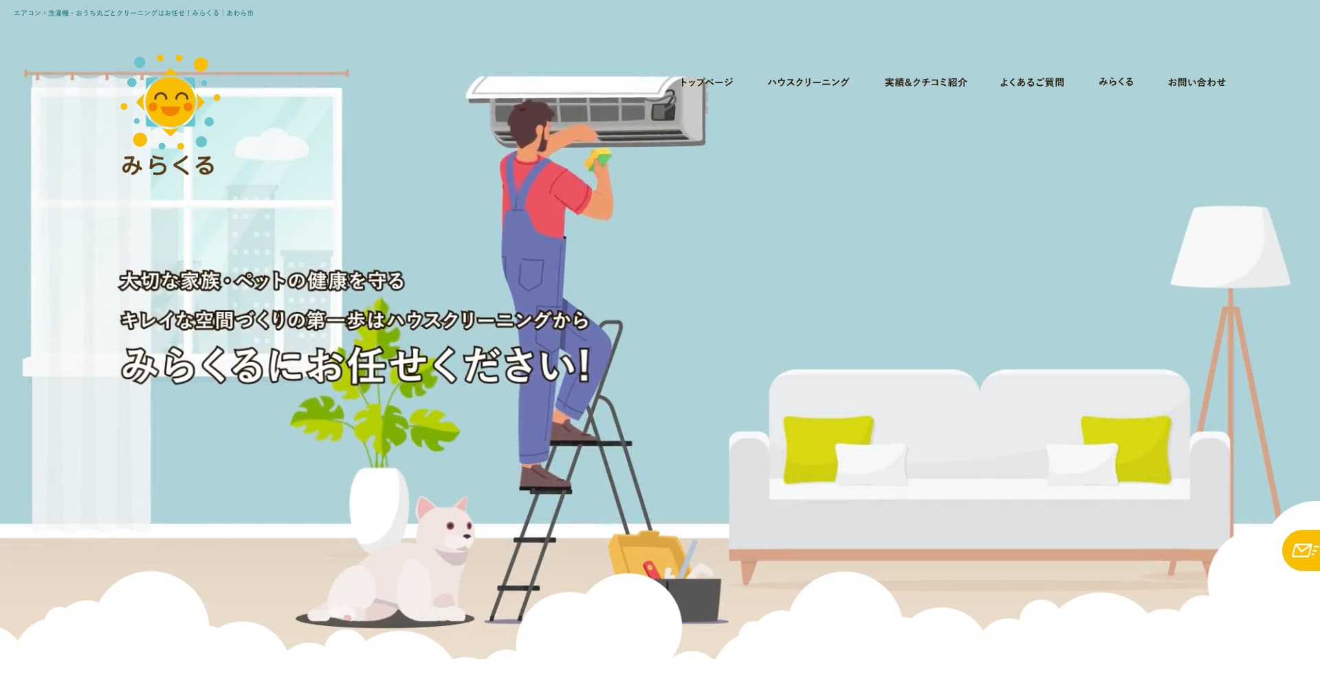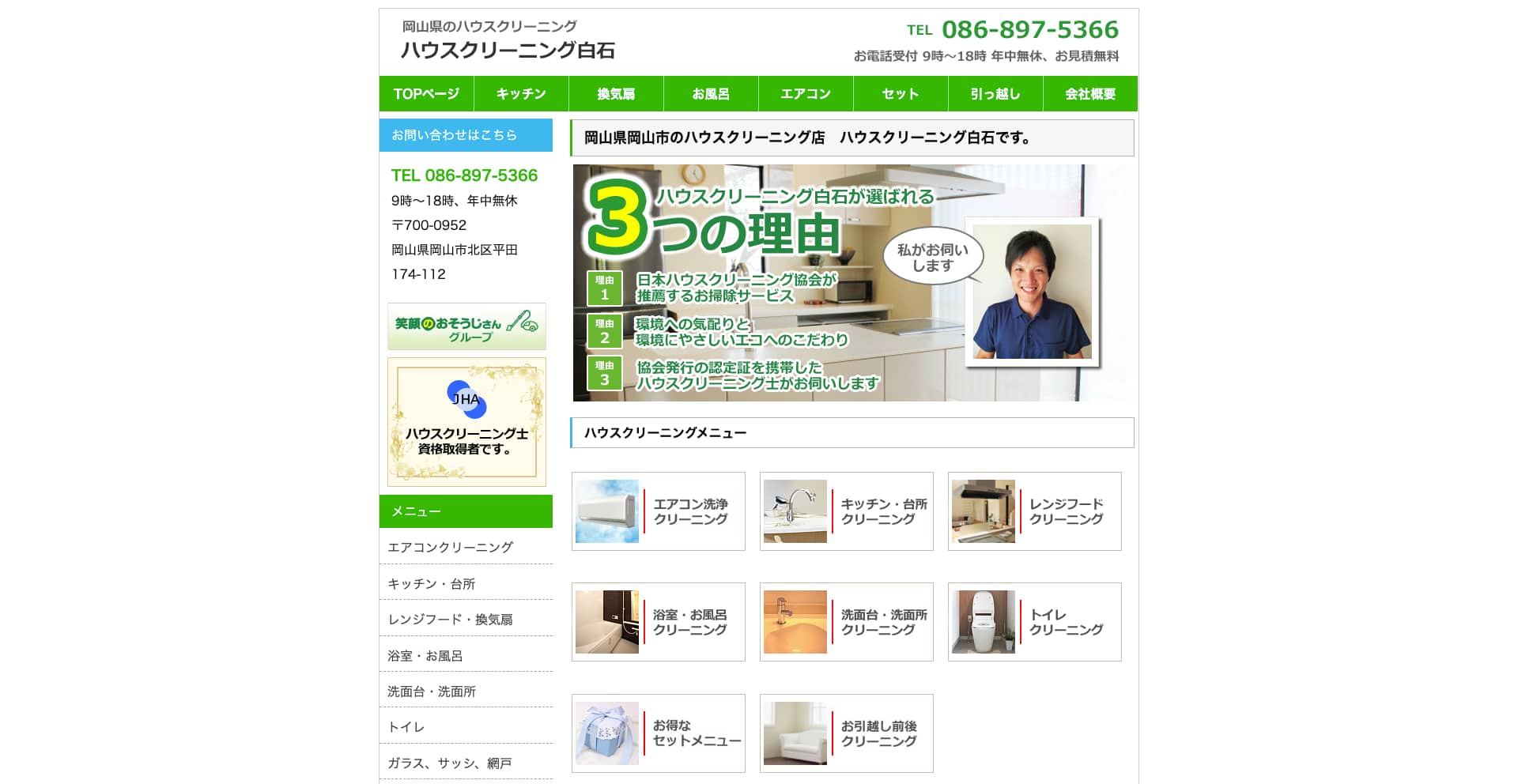 | サービス内容 | キッチン、レンジフード、浴室、トイレ、洗濯機、エアコン、床、窓など |