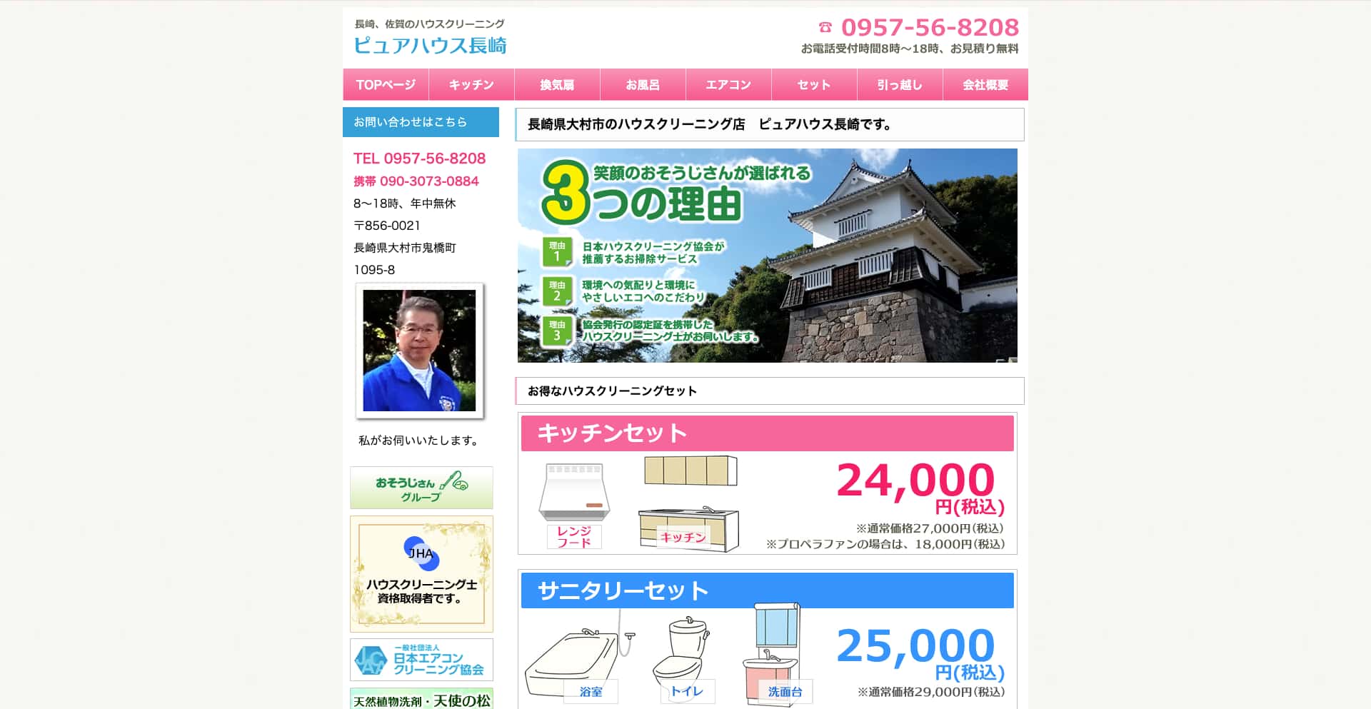 | サービス内容 | エアコン、レンジフード、キッチン、浴室、トイレ、洗面台、窓・網戸・サッシなど |